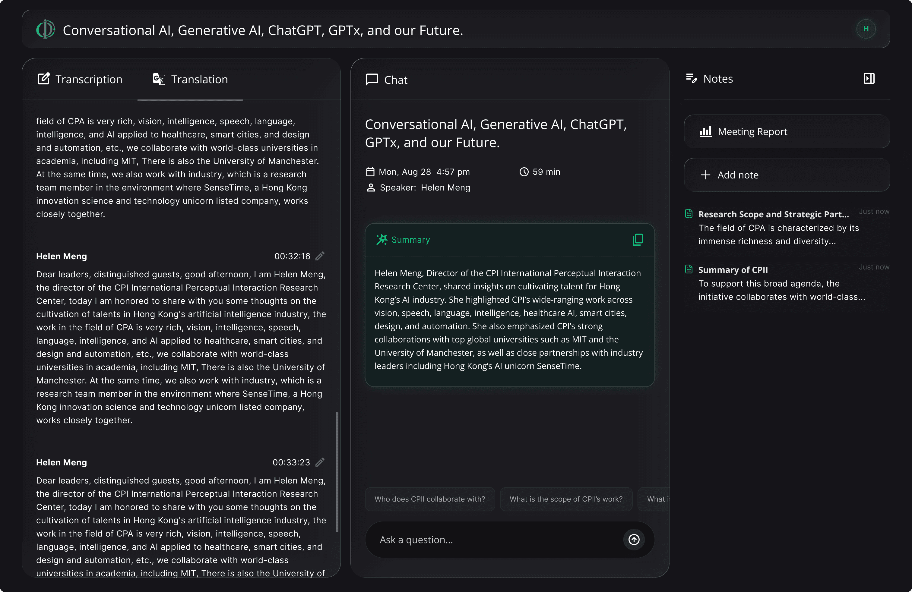 Hong Kong’s unique code-mixing of Cantonese, English, and Mandarin often breaks standard AI. The CPII Meeting Assistant is engineered for this complexity, delivering critical accuracy for high-stakes government summits and ceremonial events.