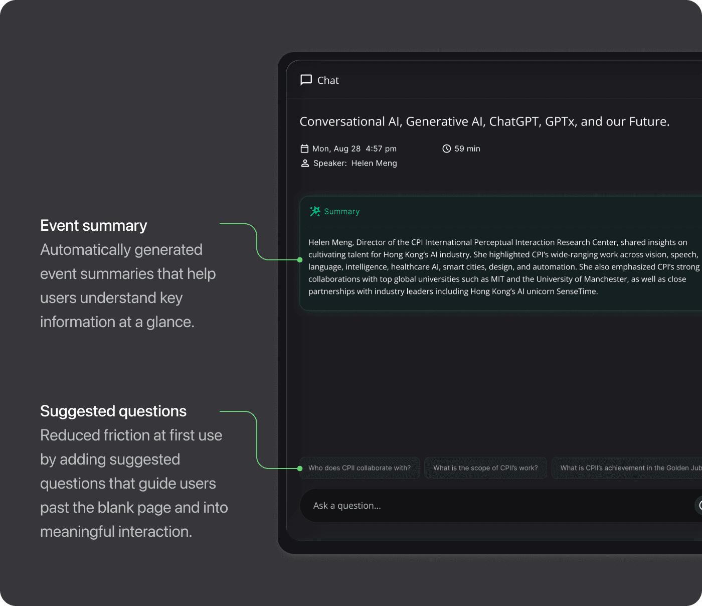 As Founding Product Designer in an engineer-led startup, I championed user-centered design by transforming passive live captioning into an interactive AI second-screen ecosystem, solving cognitive overload for trilingual government summit attendees.